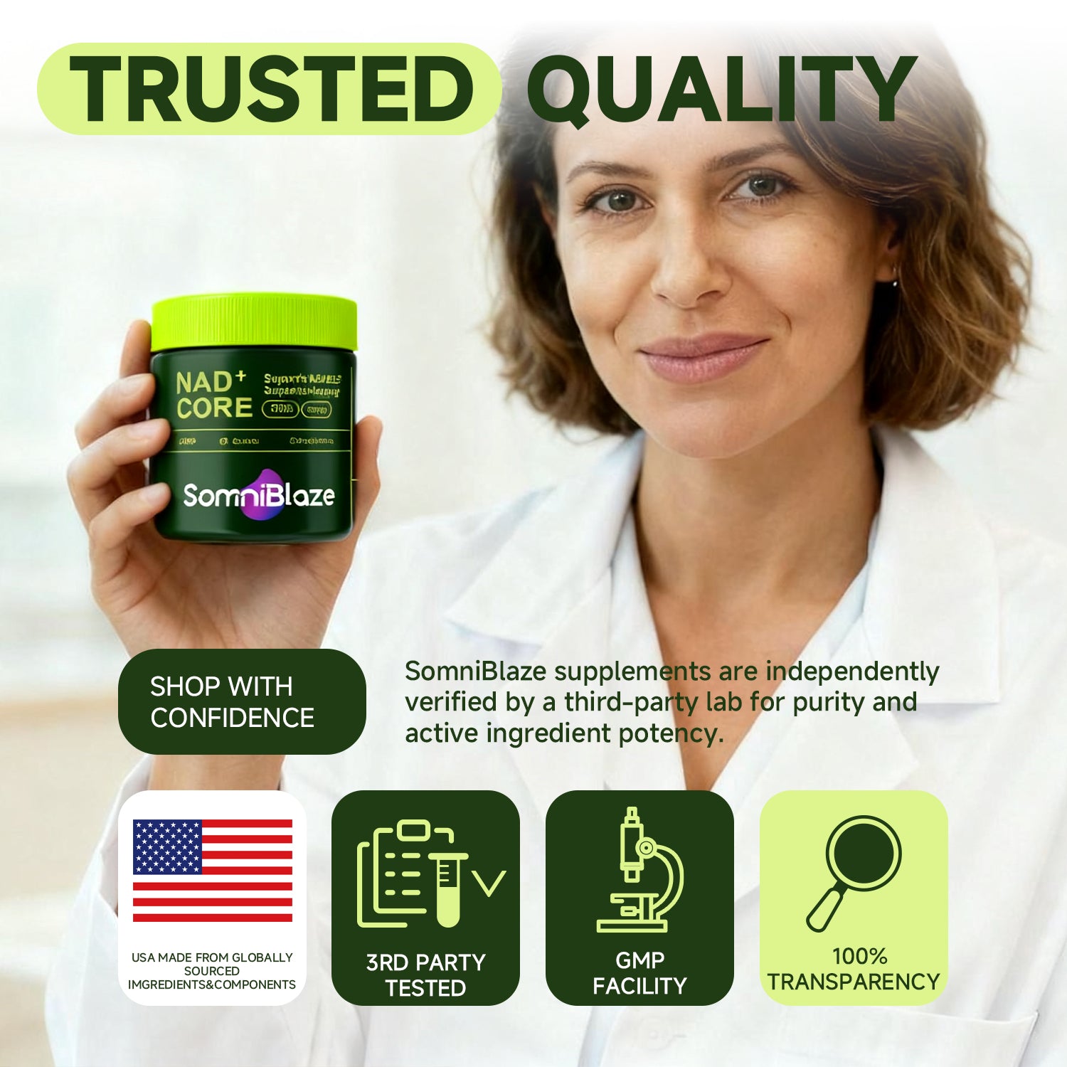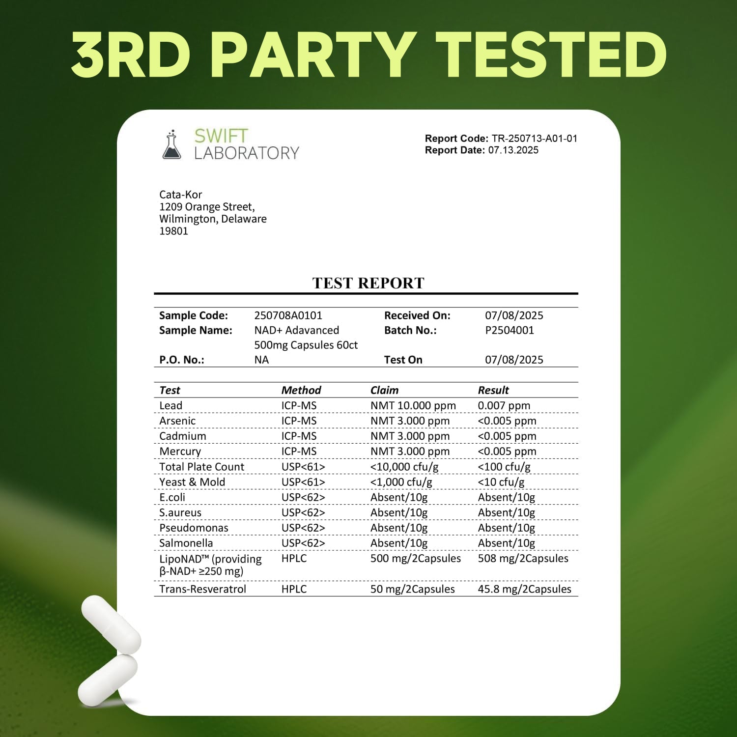 Premium Quality Assurance: Our NAD+ and Resveratrol formula is rigorously tested by third-party laboratories in the USA to ensure maximum purity, safety, and potency.